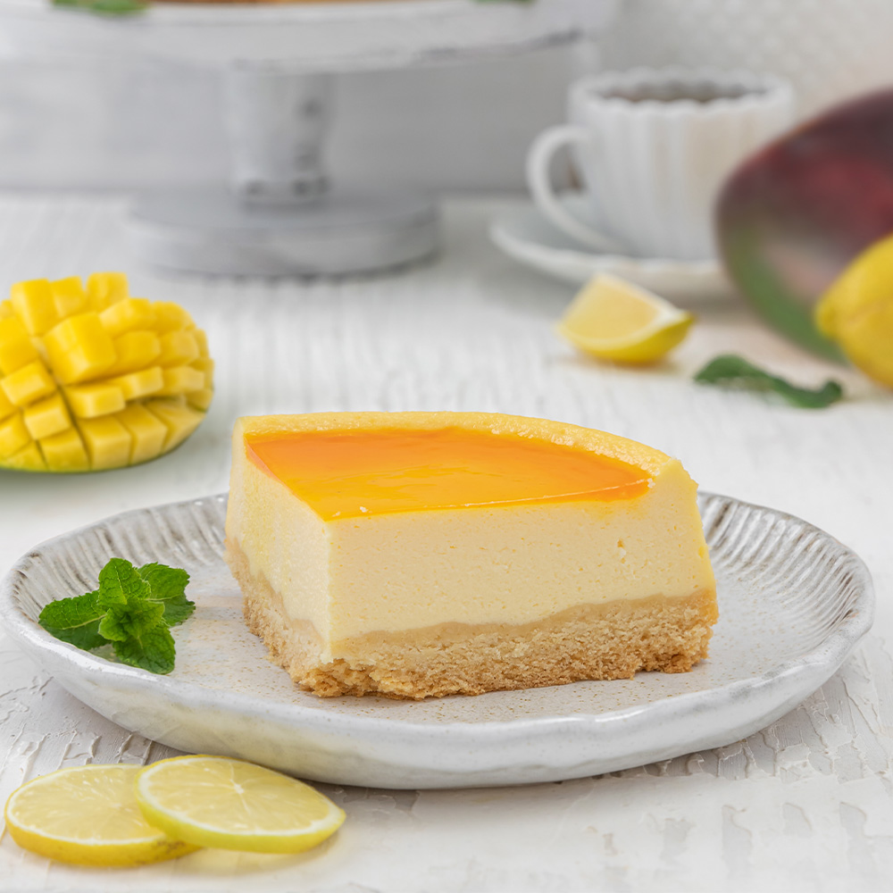 Этот невероятно нежный Чизкейк в нем нет никакого сыра в составе. Начинка готовится на основе жирной сметаны и заварного крема. Сверху выпеченного изделия, фруктовый наполнитель манго-маракуйя